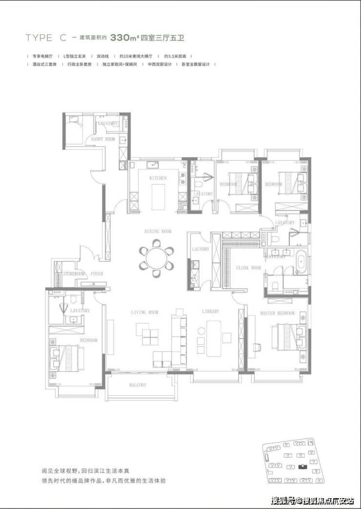 室内空间方面:项目打造私密纯粹的精装大平层、约3.3米层高(一期)、每户都有私享独立的电梯厅、270°观景会客厅(部分)!