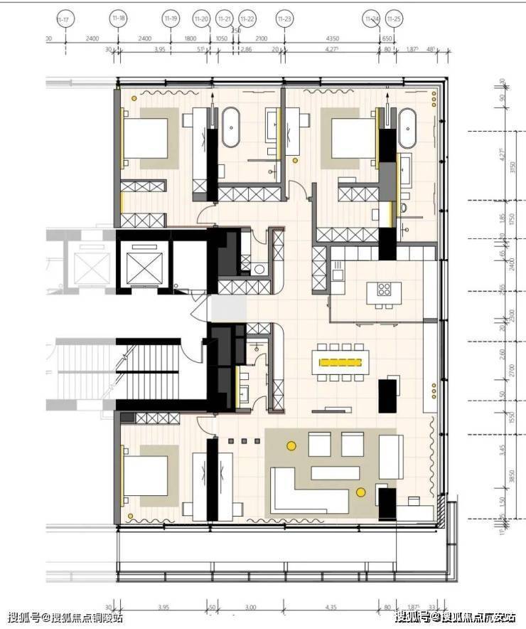 项目以德国包豪斯风格为建筑灵感,创新打造全落地玻璃墙高层住宅,由德国Obermeyer建筑设计事务所与德国Dibelius建筑事务所联袂设计。厚板框架建筑结构,开创了住宅自由定制户型的新模型(项目的科技系统都在地面或是顶棚,后期户型可以自己调整)