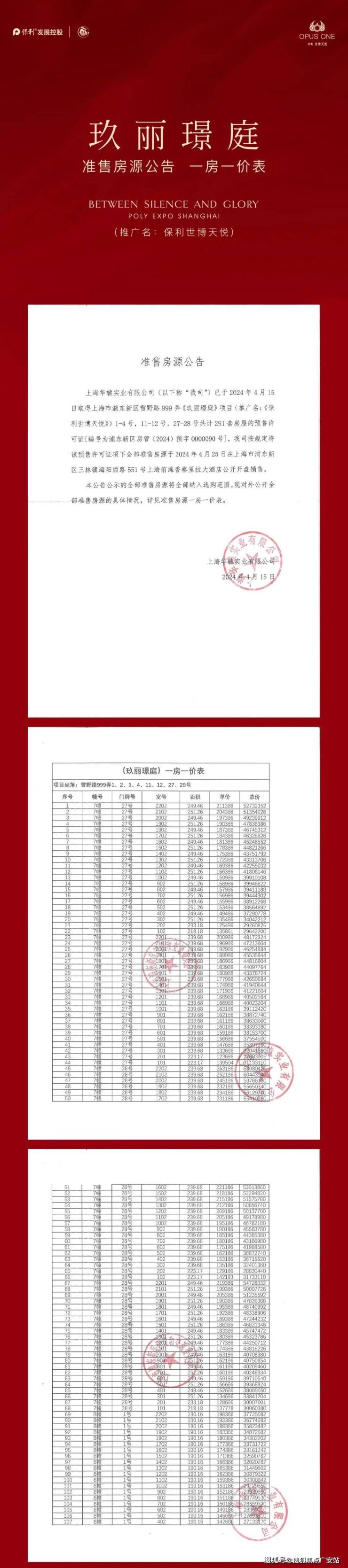 1、项目推广名为“保利·世博天悦”,地名核准名/备案名为“玖丽璟庭”,开发公司为:“上海华辕实业有限公司”;预售证号:浦东新区房管(2024)预字0000332号;2、本资料为要约邀请,不作为要约或承诺;3、相关宣传内容不排除因政府相关规划、规定及出卖人分期规划、未能控制等原因而发生变化;4、买卖双方的权利义务以双方签订的商品房买卖合同及其补充协议、附件等书面文件为准;5、本宣传材料所涉及户型仅供示意参考,具体以政府部门最终审定的图纸和销售合同为准,本资料所涉及面积皆为预估面积,相同户型单位因楼栋、楼层、单元等差异,局部结构、形式、面积、装饰等可能有所不同,且预估面积与实际面积可能存在差异,面积最终以房管局测绘为准。户型图中装修、家具、电器等设备仅为示意,不属于交付内容和交付标准,实际部品的选型和房间空间尺寸根据户型情况,略有差异,以现场实际为准;6、本宣传资料中涉及的价格、折扣、付款方式等信息,因销售时间、户型楼栋、楼层、方位等不同有所差异,以双方签订的商品房买卖合同及其补充协议、附件等书面文件为准;7、本资料所发布的内容为2024年11月的信息,敬请留意最新资料。