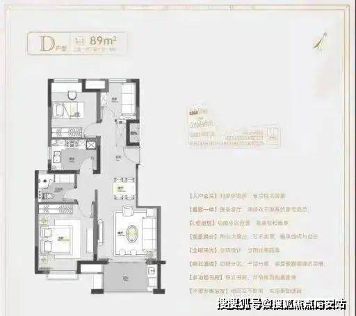 建面约78㎡2房1卫户型,做到了双开间朝南+南北通透+卧室带飘窗+动静分离,功能区划分、动线都非常清晰。