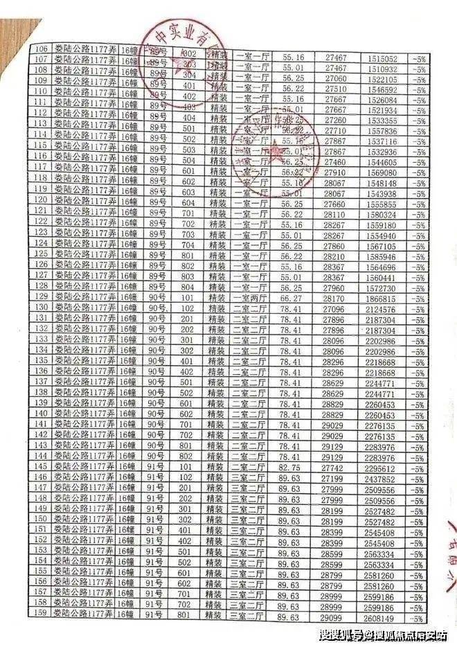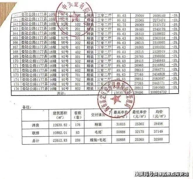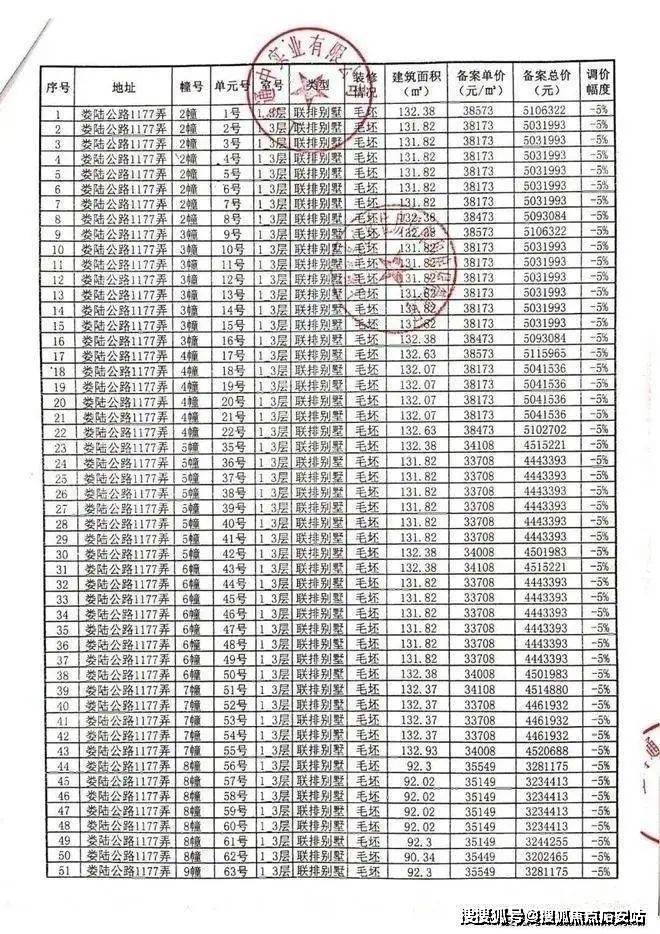 项目一房一价表: