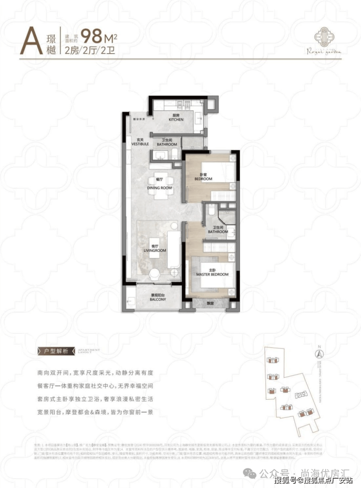 建面约94-100㎡的两房A户型是千万总价入主静安内环的理想之选,最高超79%的得房率,室内几乎没有走廊等空间浪费;动静分离,主卧套房设计,配独立卫浴间,居住舒适;次卧功能定位多样,可做多功能儿童房、书房、工作室、电竞房等等;阳台尺度宽适,增加实用空间的同时,还可为宠物设计一处梦想乐园。