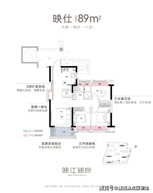 作为华润置地海派3.0作品,映江润府的卷,更在于其硬核的产品力,尤其在户型的设计上,堪称卷到极致。映江润府全盘仅规划89和103两种户型,每个都堪称王炸。