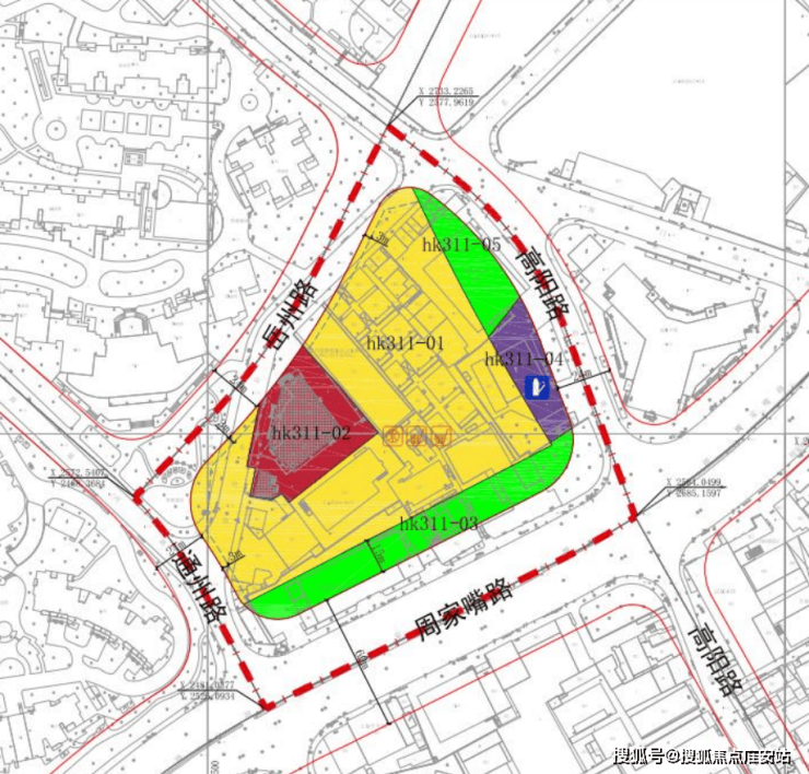 四至范围:东至hk311-05和hk311-04地块,南至hk311-03地块,西至通州路,北至岳州路和hk311-02地块