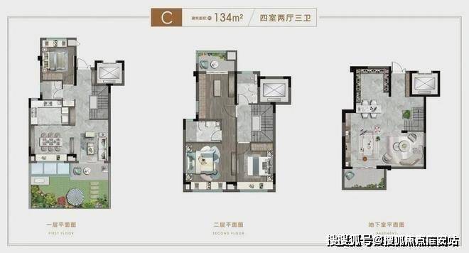 四层为2间起居室,全南卧室,从容尽享和煦阳光与清风,主卧套房,私密有度,尽享舒适日常。品质三卫,主客分明,起居互不打扰。全尺飘窗,延伸空内空间尺度向阳光更进一步,让生活更多一重享受。全明附赠空间,可根据需求个性化改造仰望是星空,远眺即美景!