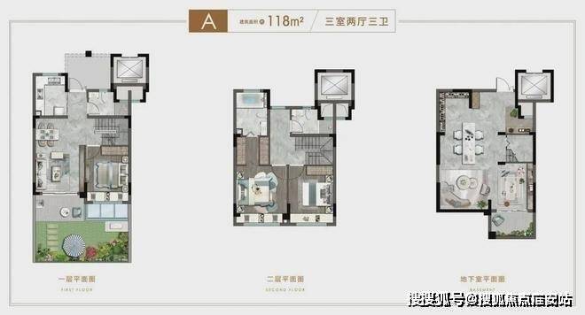 约123平上叠3房户型,共上下两层,全明设计,格局开阔,宽景阳台,上承天空,下承生活。