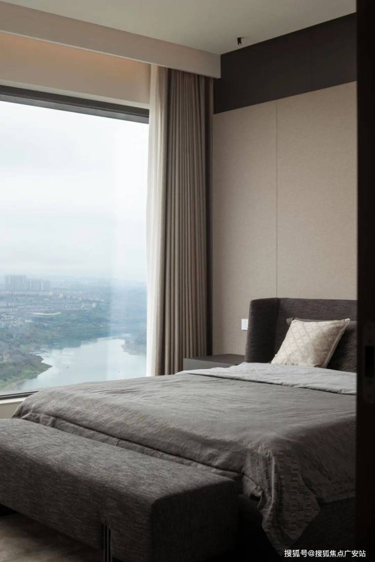 主卧延续着精致简约的基调,粗粝质地中藏着精密尺寸的计算,其纹理背后亦可感知到匠心工艺。在优越的山河景观之中,所有浮躁都会渐渐淡去。