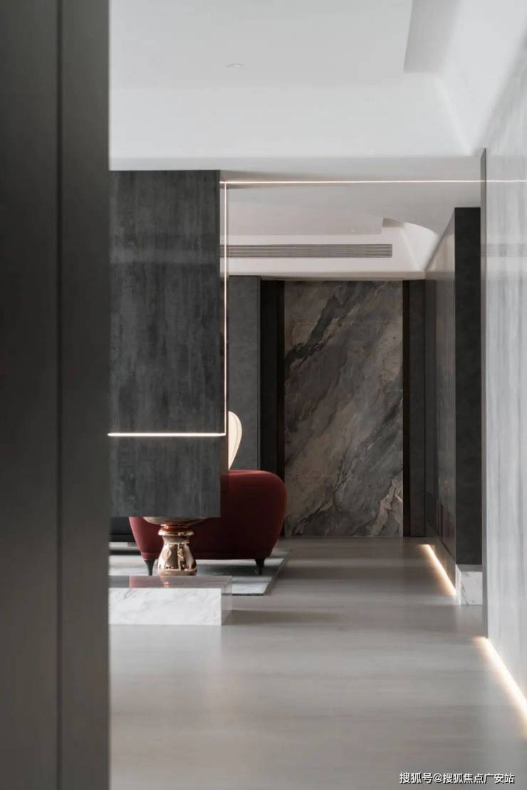 ◎光影艺术:中庭水韵纹理灯光如星河漫淌,车库玫瑰金金属网格隐藏管线,消解压迫感。