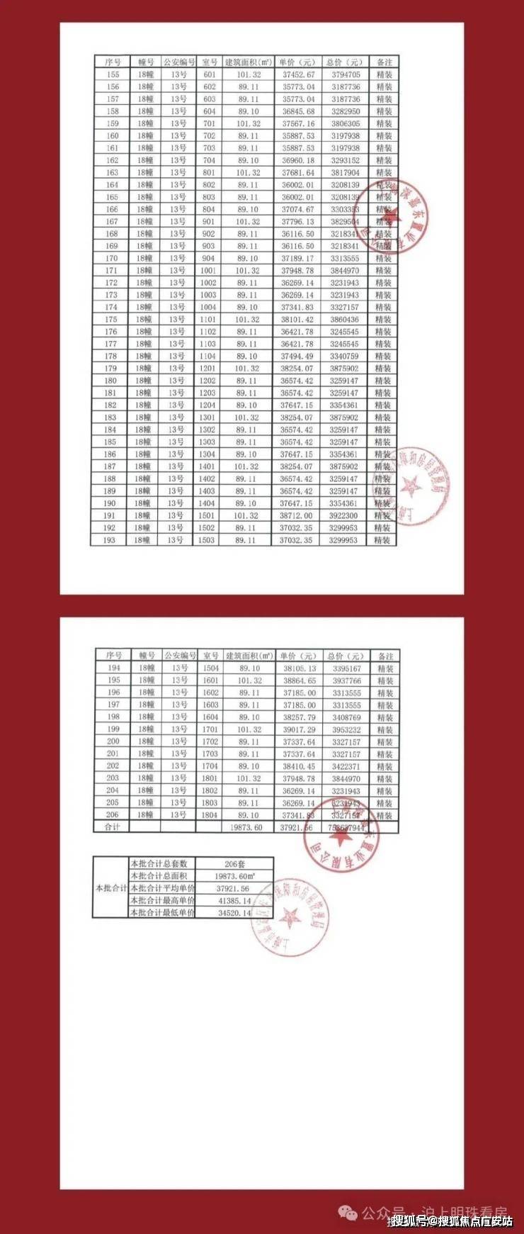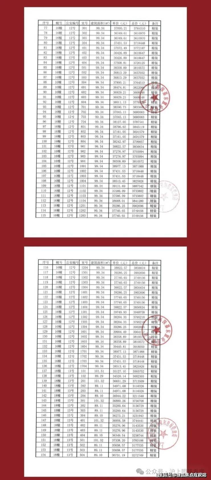 项目一房一价表👇