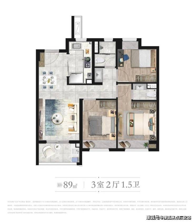 [ B户型 ] 建筑面积约89㎡ | 3房2厅1.5卫