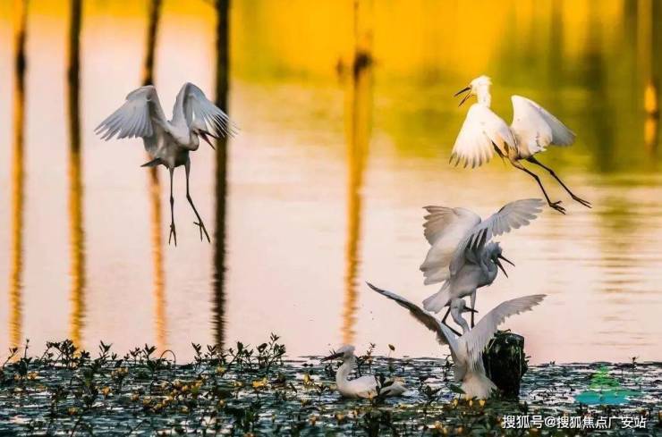 白鹭在湖面中翱翔;木栈道静静地在湖边驻扎;水杉林密密地伫立在水中,约定明年秋天还在这里看红叶。