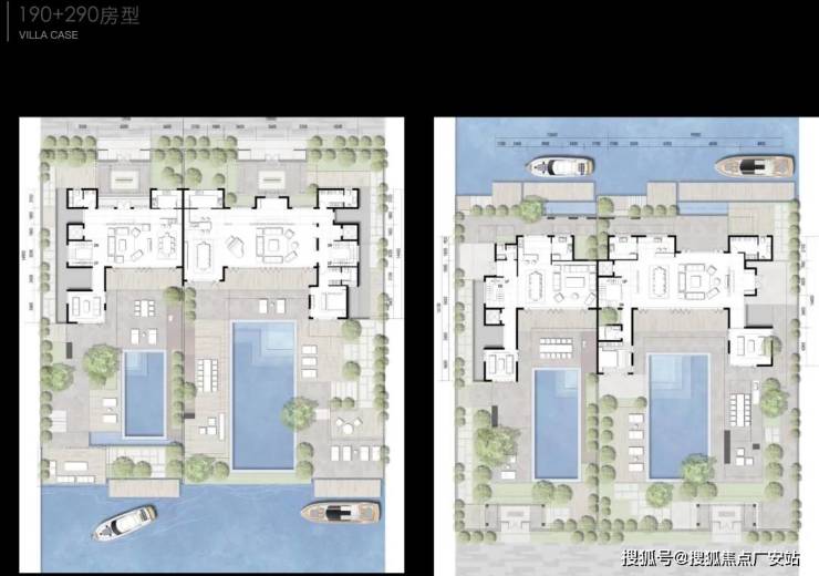 项目从此前曝光的设计方案就可以看出亮点,每一排别墅前都有一条渠道,引入水系,可以停游艇。