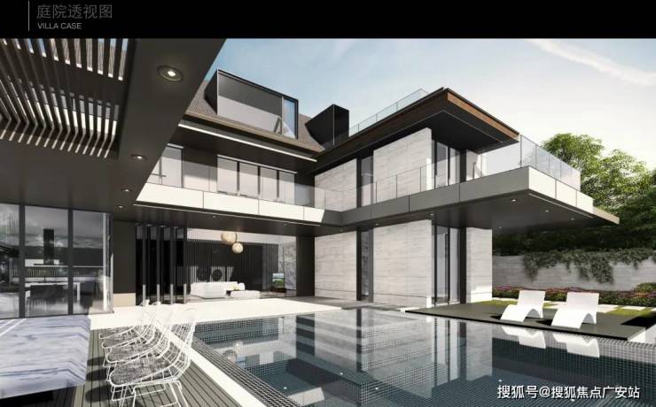 北入户的190+290房型,一层朝南直面庭院和泳池,如果配上整扇的落地玻璃移门......