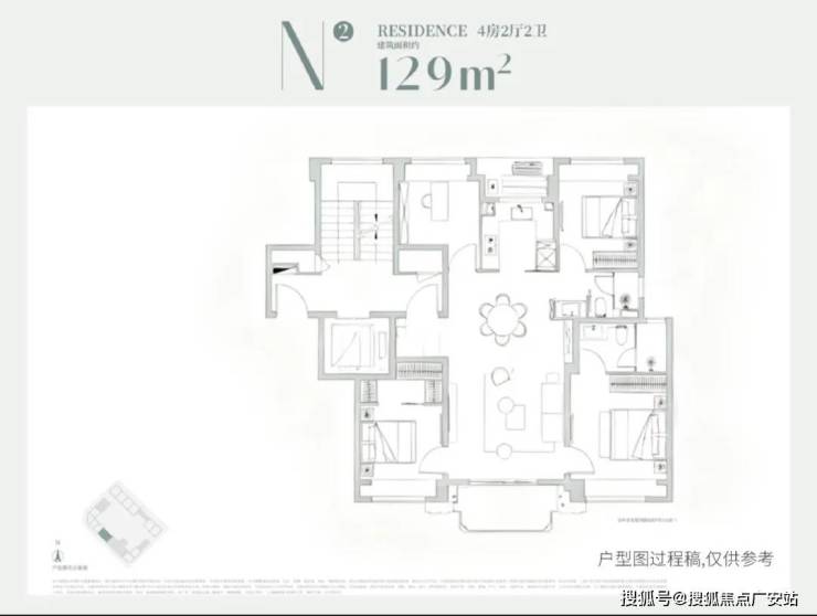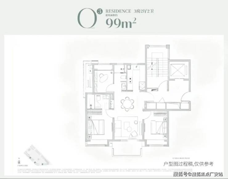 2#总高12F-13F,首层部分为社区配套+沿街商业+架空层,户型为建面约189-199㎡4房2厅3卫,两梯两户,层高约3.15米;