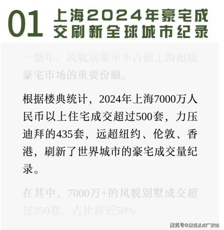 2024年上海总价7000万以上的超级豪宅成交量不仅创下历史新高,而且在全球力压伦敦、纽约、迪拜排在全球第一。