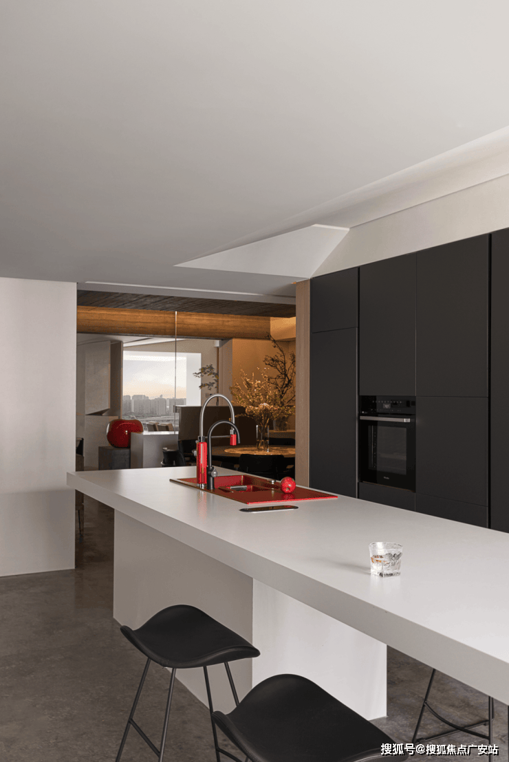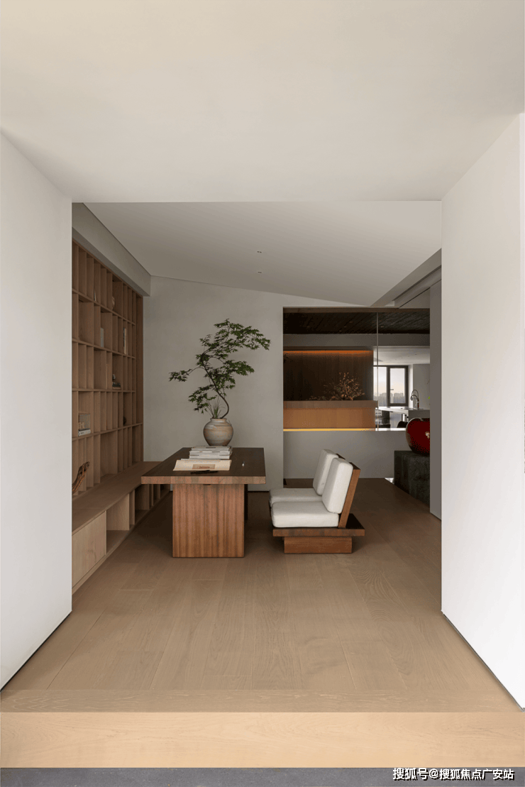 一层主要作为会客功能。样板间将一楼书房空间打开,与餐厨空间相连,更显空间感,推门就可独赏自家院中美景。还贴心设计了一个父母房,方便老人起居。