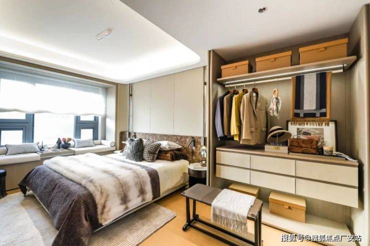 主卧做了套房设计,带双飘窗+衣帽间+卫生间,专属于主人的私密空间!