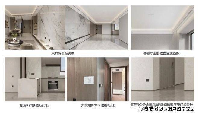 而在硬性标准之上,保利·海上瑧悦还充分融合了东方文化高定细节!比如说,客厅整面交付的大面积岩板背景墙均为东方定制款式,采用的是水墨丹青和徽州印象样式,配色风格凸显东方风雅;