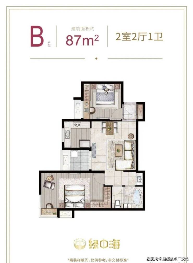 项目容积率仅3.0,绿化率35%,采用新中式建筑风格,外立面使用巴西进口石材与真石漆,每栋楼镶嵌11条"飞龙在天"石材雕饰,彰显品质感。社区内U型水系环绕,中央设置层叠式瀑布,打造"移步异景"的江南园林景观。主力户型为87-133㎡的2-3房,得房率高达81%-83%,远超市场平均水平。87㎡两房采用南北通透设计,主卧套房配置;124-133㎡三房配备双阳台、U型厨房、双卫分离,空间利用率极高。项目为精装交付,装标达5000元/㎡,配备东芝中央空调、安泽地暖、樱花蒸烤一体机、HCG智能马桶等国际一线品牌,实现"拎包入住"的便捷体验。