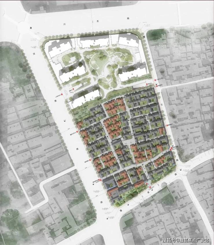 设计遵从规划及风貌要求,明确边界条件及周边控制要素;保留或延续望云路、亭桥街、净土街、倒川弄及南张家弄走势,织补次弄系统,完善整体巷弄格局;依托建筑甄别,研判并保留部分历史建筑成为历史记忆标识点;延续并织补老城厢独有的小肌理单元模式;运用丰富建筑原型,完善建筑空间体系。