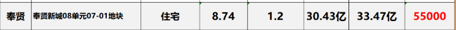 信息源:上海土拍