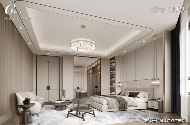 卧室配置更衣室、卫生间及阳台。主卧更显奢华,独立书房及步入式衣帽间诠释由内而外的儒雅气质,开阔露台留给诗和花的自由空间。