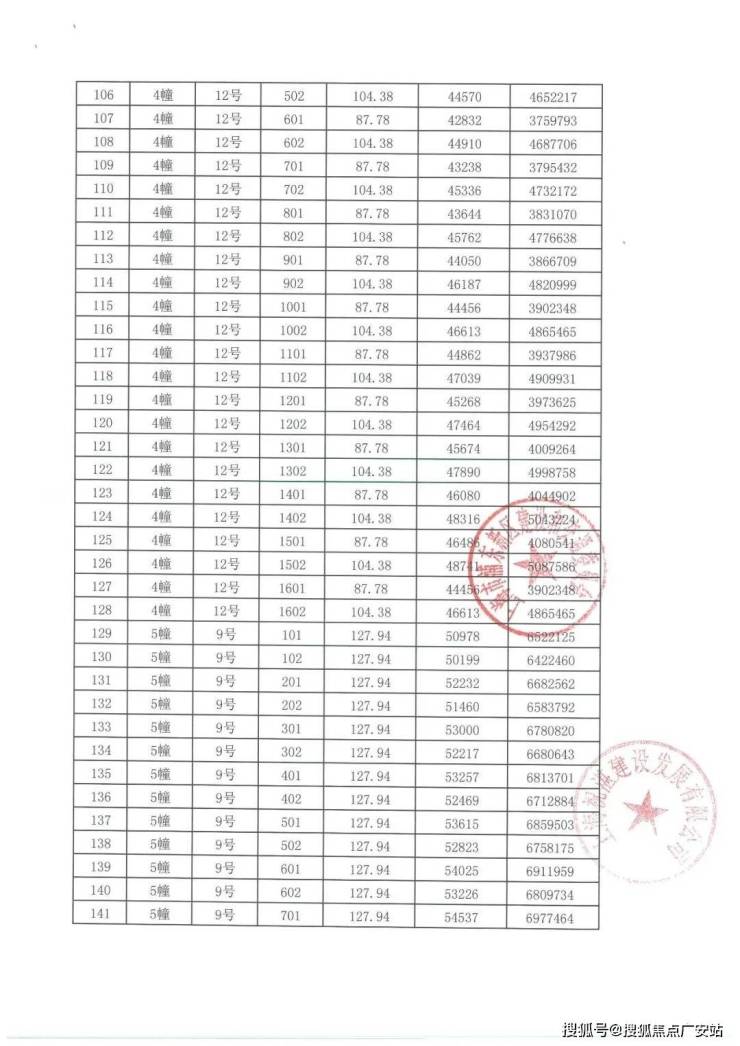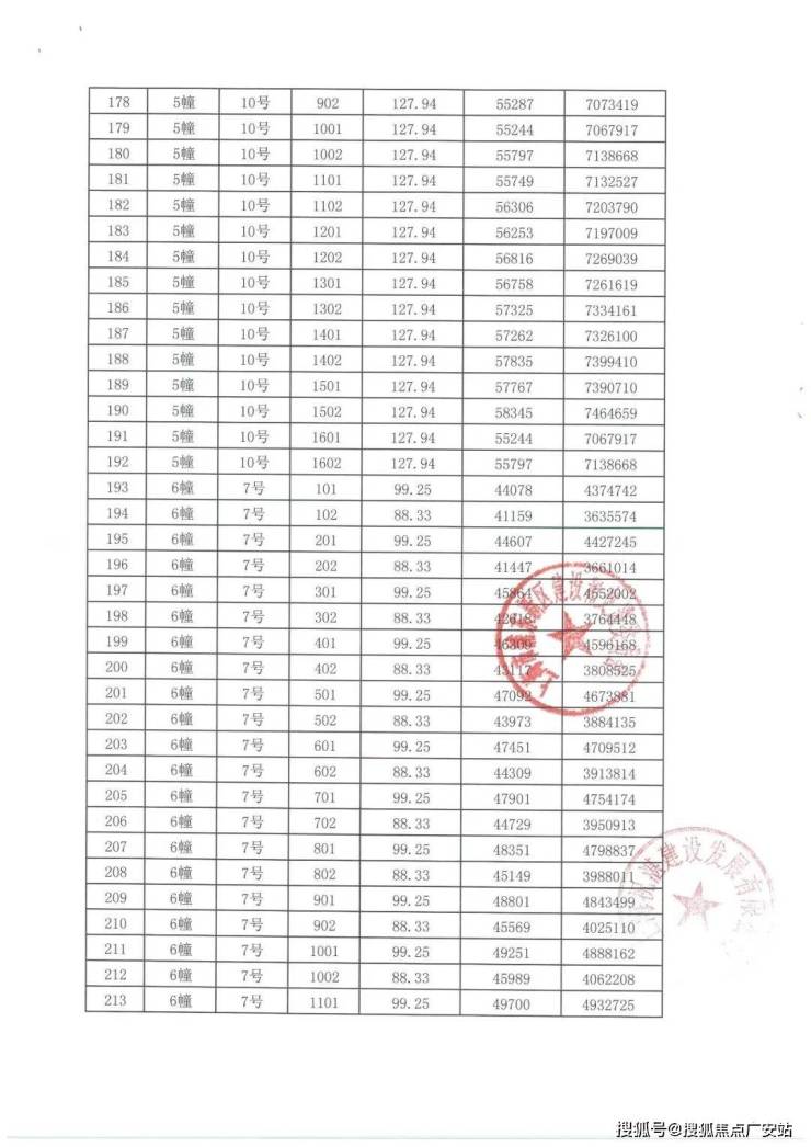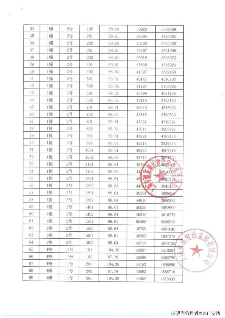 项目一房一价表