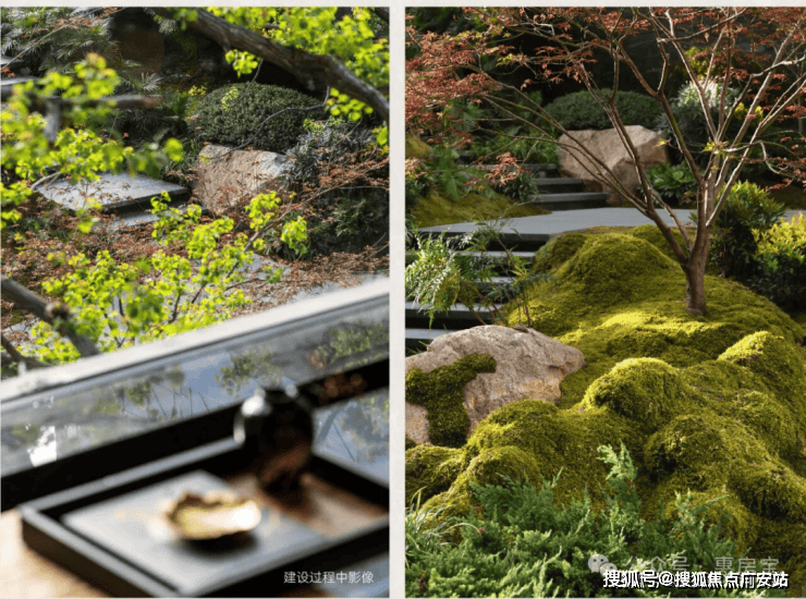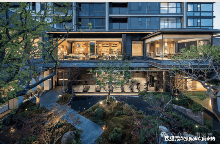 约6米地势差打造的下沉式山水庭院,山、石、水、林有序交织,犹如一幅“豁然开朗山水轴卷,每一步皆是景致,每一处皆有不同。