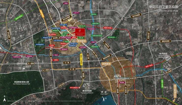 以【申花印月】为原点,一条莫干山路直通武林广场;一条学院路直通黄龙、西湖;一条秋石高架直通钱江新城,从整个交通组织以及空间肌理上奠定杭州主城正芯的格局。