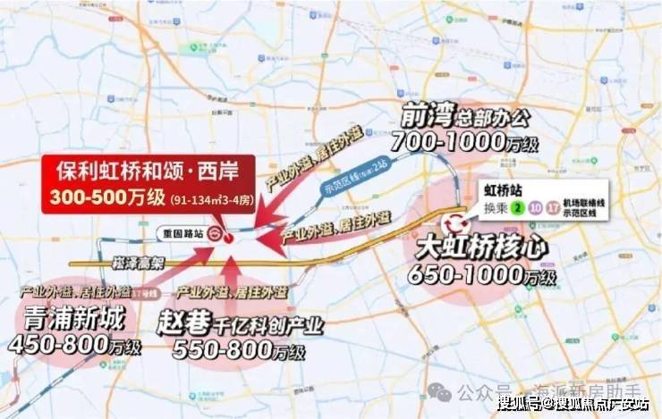 项目东面2站之隔的前湾、徐泾,房价已达700-1000万级,即便下游的青浦新城,房价也处于450-800万级