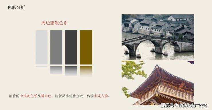 设计中,源引宋式建筑及园林意境,追溯典雅清逸的美学理念,将宋代建筑及构筑物特征进行现代化演绎,形成独特的符合现代审美的建筑风格及建筑空间。