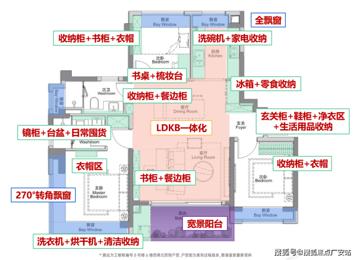 最后,多飘窗设计,进一步“偷”出了实用面积。居住体验更阔绰!