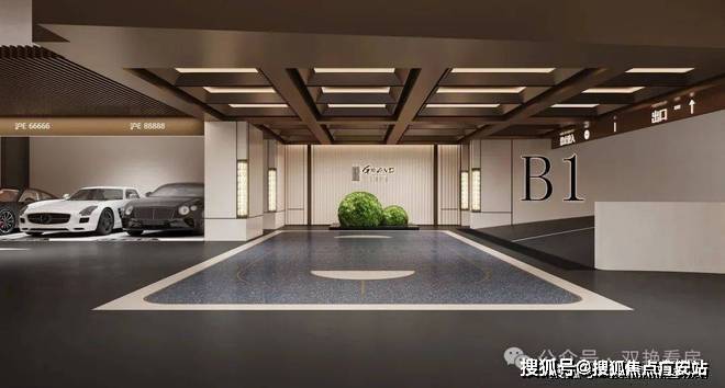 星级地库:墙面大面积米色石材,地面铺设金刚砂地坪,质感非凡