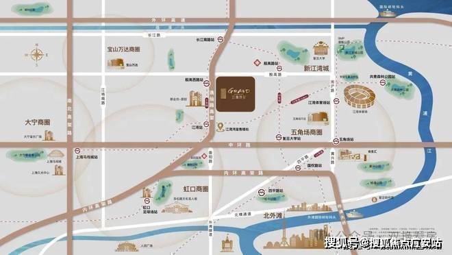 项目位处宝山、杨浦、虹口、静安四区黄金交汇地,坐享五角场、新江湾城、双核辐射,北外滩发展规划红利叠加。区域以“科创高地+宜居新城”的定位,享政府千亿级产业政策倾斜,是未来科创人才集聚核心区。