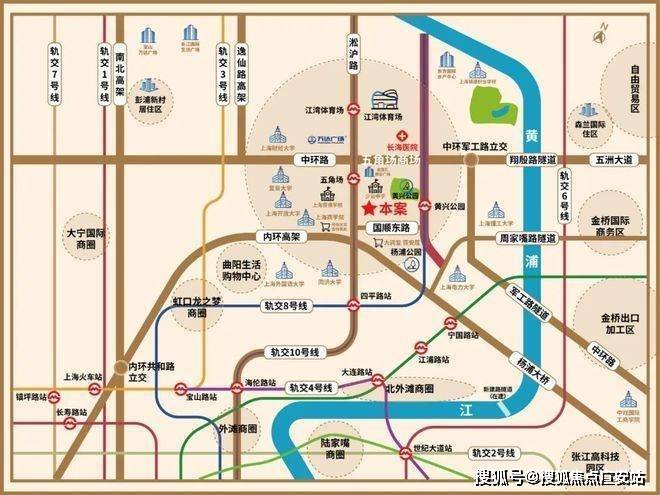 交通:靠近内环、中环,大连路隧道,自驾出行可便捷到达浦东机场,虹桥机场,上海火车站以及全城各大繁华商圈。项目距离10号线五角场路站900米,8号线黄兴公园路站1.5公里(数据来源于百度地图)。