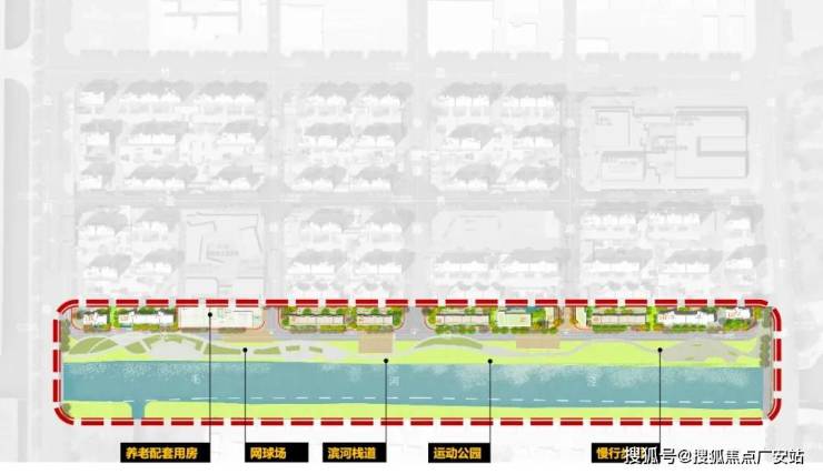 一界面:网球场、运动公园、沿河栈道、漫行步道,滨水公园成为私家后花园