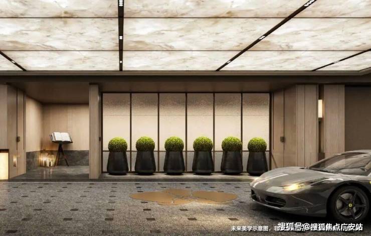 精装车库,金茂这次也拿出了流光穹顶的天幕和定制化的归家门头,甚至地面都采用了石材来增加奢华感。