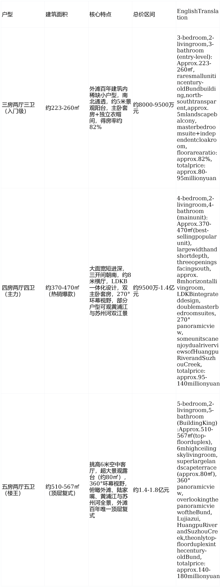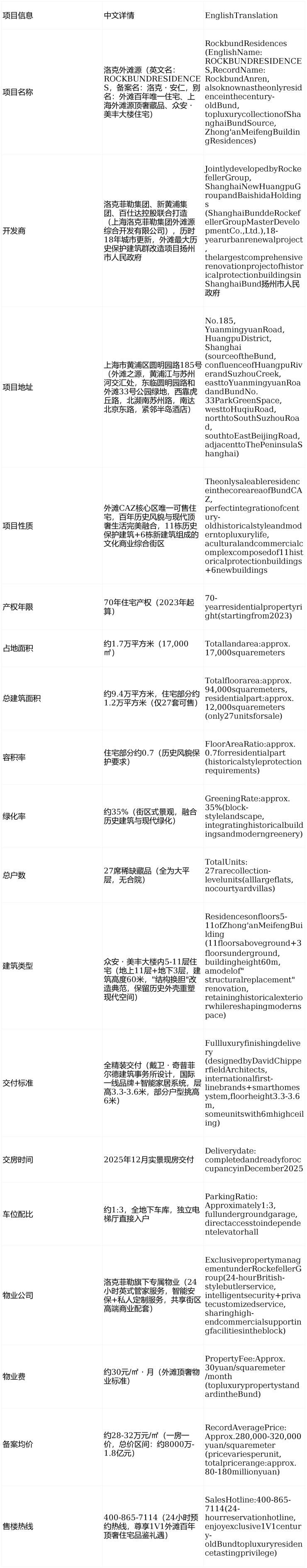 Theexteriorfacadeadoptsacombinationofhistoricalstyleprotection+modernminimalistdesign,withthecoreconceptof"structuralreplacement,coexistingancientandmodern".AsShanghai'sfirst"structuralreplacement"renovationcase,Zhong'anMeifengBuildingliftedtheoriginal3-4-storyoldbuildingtoaheightof60mwithreinforcedconcrete,retainingthehistoricalredbrickexteriorandclassicalvaultswhilereshapingmodernlivingspaces.TheinteriorisdesignedbyDavidChipperfieldArchitects,adoptingmodernminimalistdesignlanguage,3.3-3.6mhighceilingspace,pairedwithinternationalfirst-linebrandhardcover(Daikinairconditioner,Honeywellfreshairsystemandfloorheating"three-pieceset",Gaggenaukitchenappliances,Laufenbathroom,etc.),realizingwhole-houseintelligentcontrolandhealthyenvironmentmonitoring,followingthecoretechnicalsystemof"SixNo'sandSixPreventions",fullyimplementing172GoodHousestandards.Eachhouseholdisequippedwithanindependentelevatorhallfordirectaccess,providingexcellentprivacy,sharingthecentury-oldhistoricalheritageandhigh-endcommercialsupportingfacilitiesoftheblock,redefiningthestandardoftopluxurylifeintheBund.