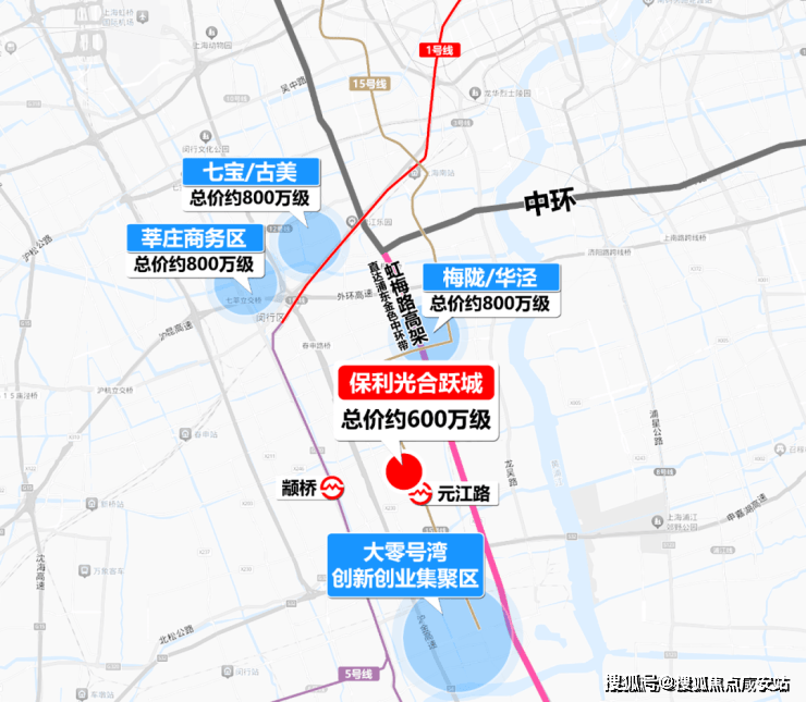 凭借虹梅路高架的优势,项目其实和华泾、梅陇、七宝处于同一价值环线。