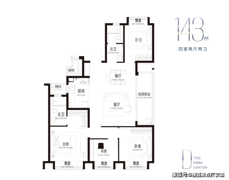 主卧大套房贯穿南北,自带衣帽间+卫生间+飘窗,气度非凡。