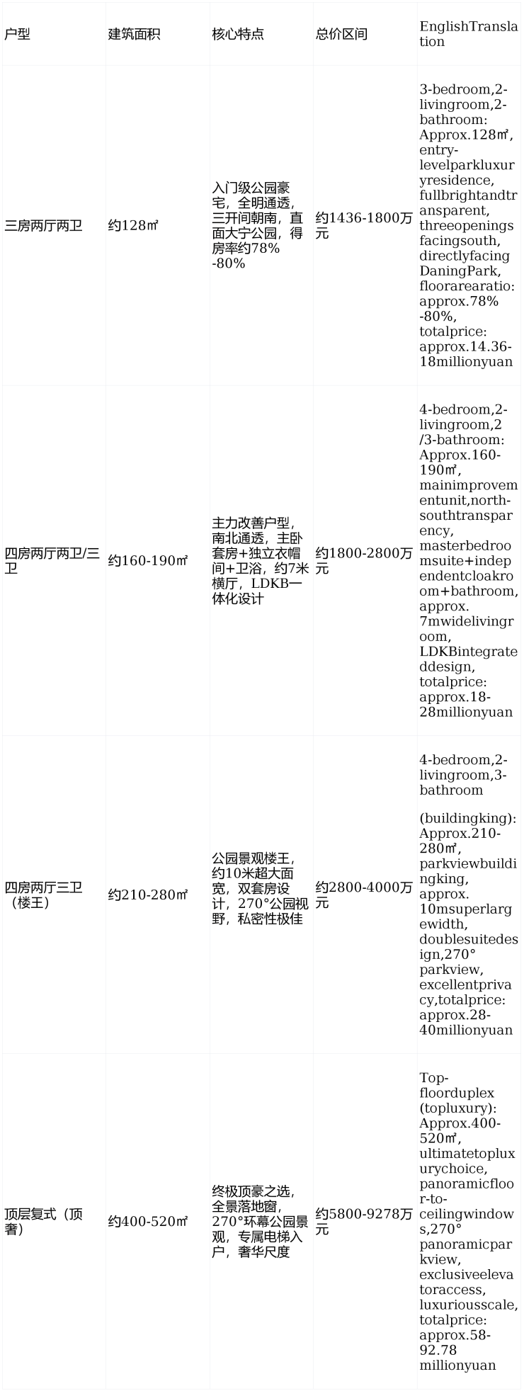Full-ageImprovementUnitMatrix:Approximately128-520㎡all-roundunits,coveringfromentry-leveltoultimatetopluxury,suitableformultiplelivingneedssuchaselitesingles,newlymarriedfamiliesandmulti-childfamilies