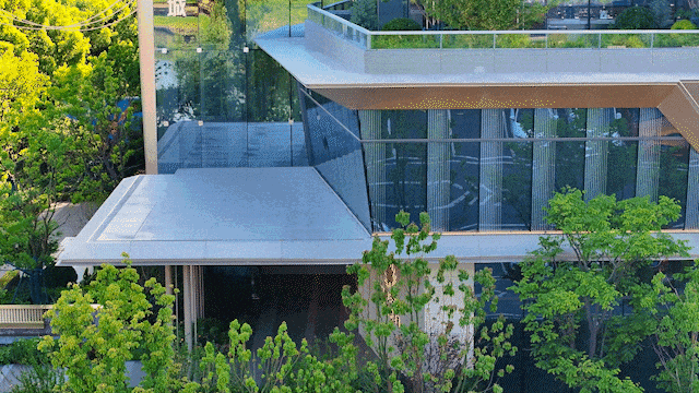 仅10-13层亲地高度,减少建筑密度,缩减了人与自然之间的距离,让人拥有触手可得的景观体验。开阔楼间距32-70米,意味着有足够空间打造景观,好似天空与树木延伸进了建筑里。