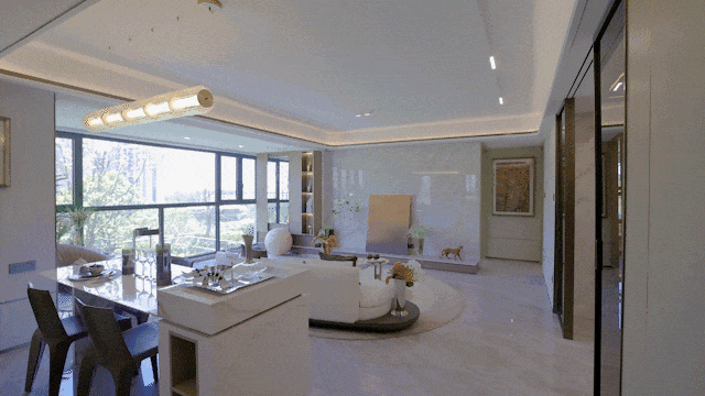 试想一下,当窗外的水系在缓缓移动,国际住宅定格在落地窗前,公园里的树影婆娑,站在落地窗前的你,心跳是不是也跟着停顿了几秒?