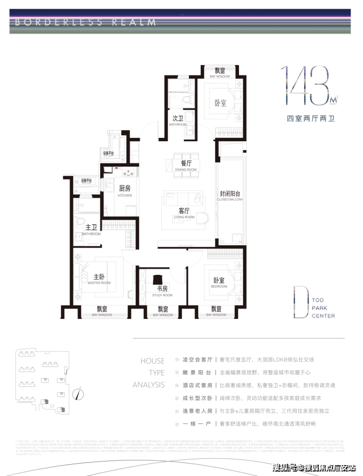 270度转角大阳台,IMAX级观景面尽收眼底,进一步凸显了内外皆公园的景观资源优势。次卧可以推门即达阳台,双向出入动线灵活自由,增添便捷与温馨。