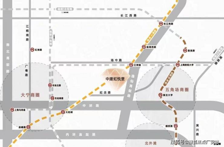 商业方面,江湾镇这个板块是宝山/静安/虹口/杨浦四区交界处,板块“左邻右舍”都是比较热闹的商圈——西面市北高新+协信、北面高境+宝山万达、东面杨浦五角场,南面虹口曲阳+四川北路商圈。