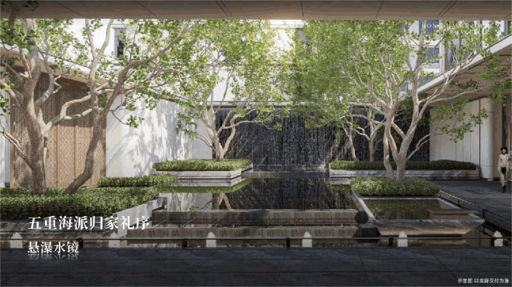 一条归家场景轴,串联五重礼序归家路线,演绎大宅的规划礼序。