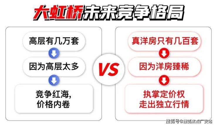 未来的大虹桥,将有几万套高层互相竞争,难免陷入价格竞争红海;而纯6-7层洋房,没有替代品,仅个别小区几百套货量,更容易执掌定价权,走出独立行情。