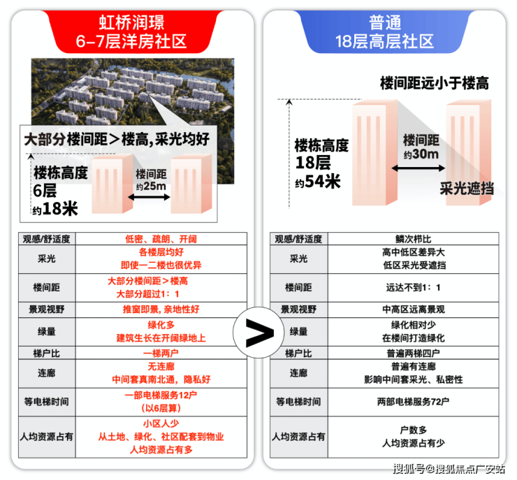 形态降维打击:虹桥润璟是徐泾别墅区中的1.2容积率6-7层纯洋房,其他竞品无一例外都是2.0-2.5容积率高层