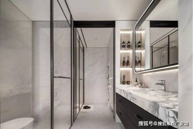酒店式四分离公卫:实现独立洗漱台、卫生间、淋浴间、洗衣区互不打扰,将酒店化体验引入住宅,早高峰时期也能做到出入有序。