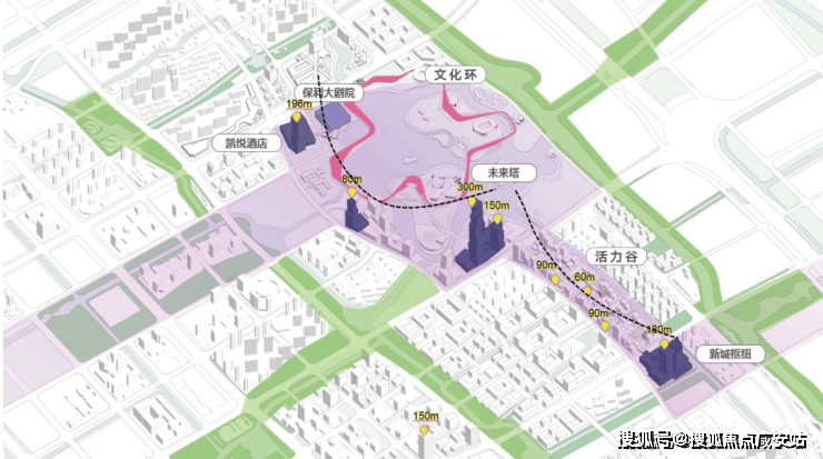 ·未来塔:位于CAZ的正中央,建成约300m,将成为嘉定甚至是上海西北第一高楼,是真正的C位地标(规划中)